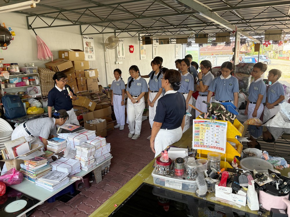 The Singapore team seized the opportunity for the Tzu Shaos to visit the Tzu Chi Pontian Recycling Station to learn about resource sorting. (Photo by Lee Sook Ching)