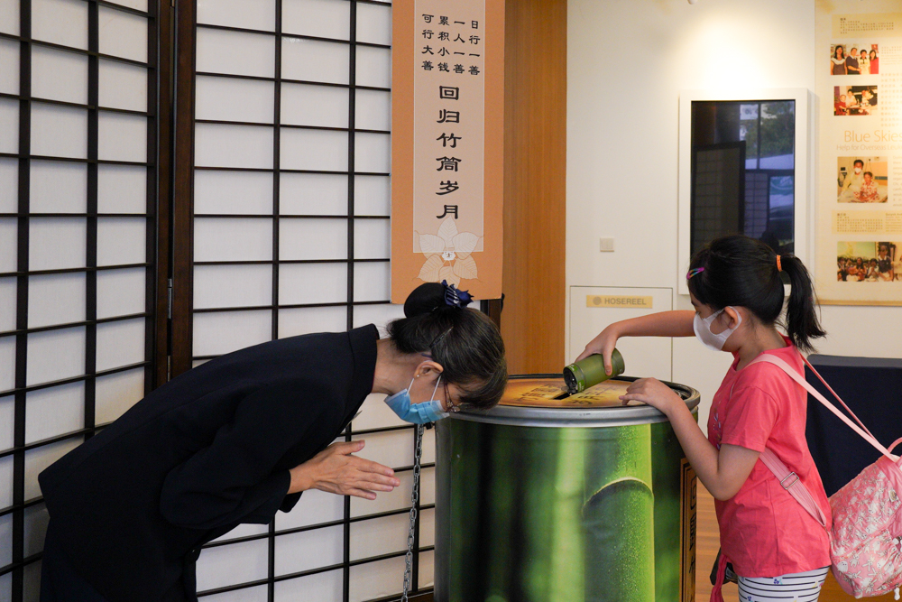 黄月梅说:“从小就让孩子见苦知福,懂得付出,所以孩子每天都有投竹筒的习惯。”在善与爱的教育熏陶下,孩子们也带来存很久的竹筒,将铜板滚滚流入功德海,凝聚爱心,希望能帮助更多的人。