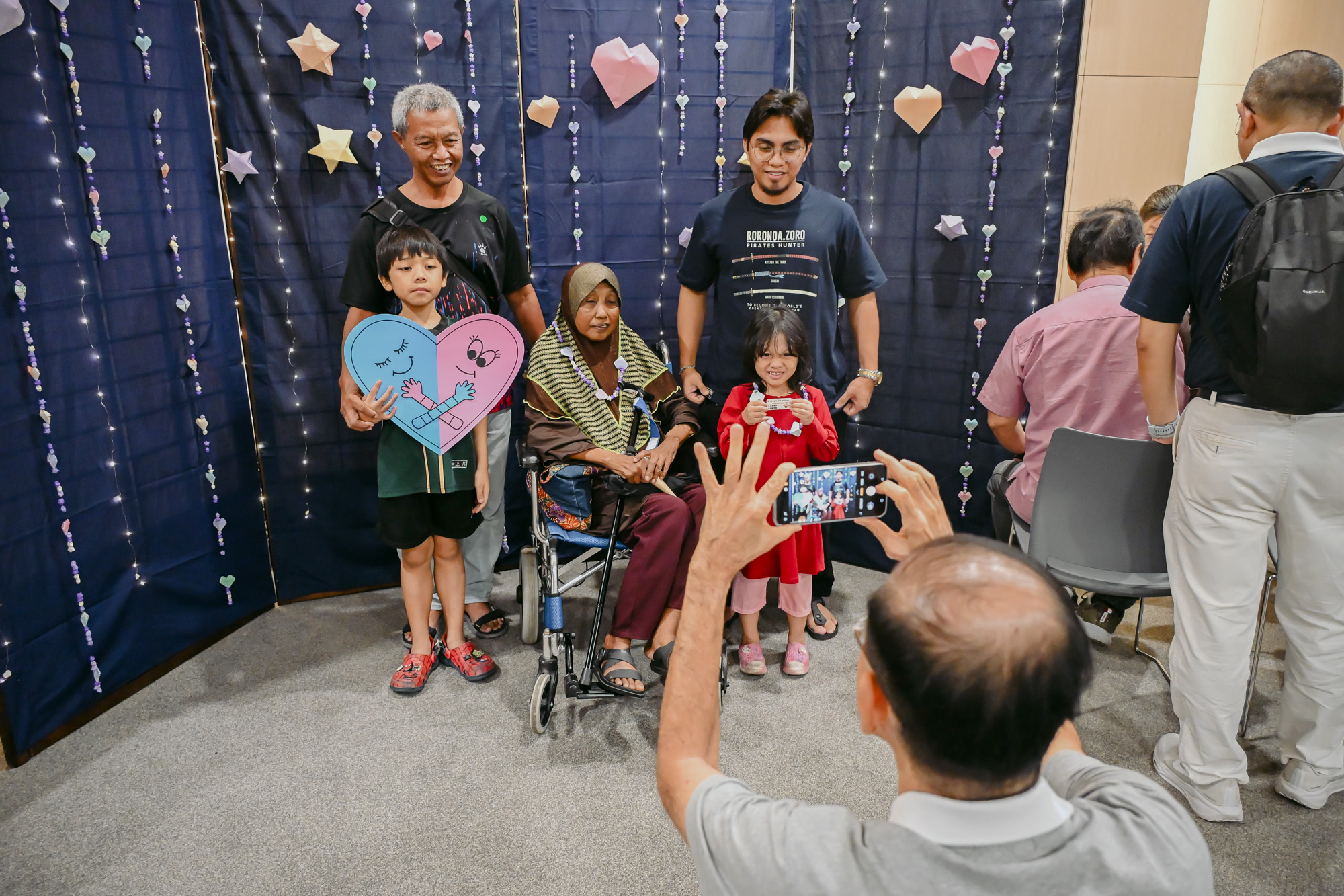 场内设有用星星与爱心布置成的“夜空”拍照区,志工使用拍立得为肾友与家人留下美好回忆。摄/ 蔡佑良