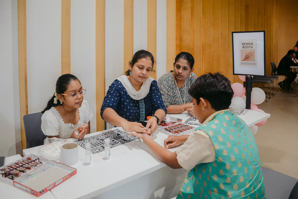 海娜,是屠妖节庆祝活动中,一种绘制在皮肤上的装饰艺术,象征健康、喜悦和力量。第二次参与屠妖节祝福会的阿碧拉米(Bellamkonda Muni Abirami),今年负责为照顾户绘制海娜,愿健康与喜悦,随花纹一起传递给对方。